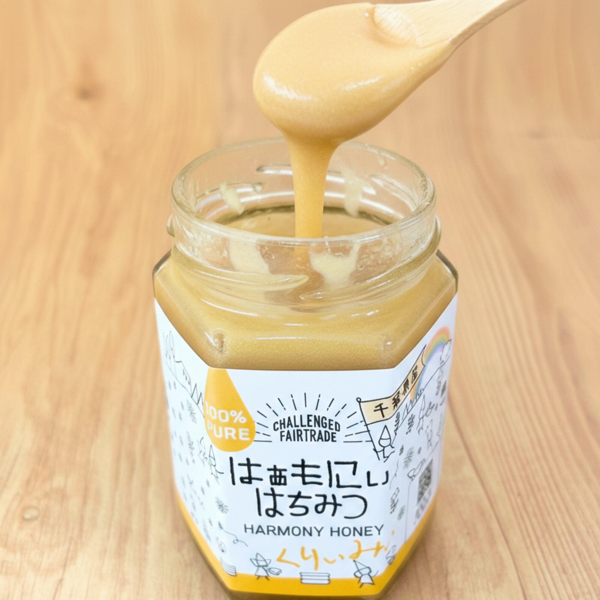 クリーミー生はちみつは、通常の液状はちみつと異なり、なめらかなクリーム状です。結晶化した生はちみつと通常のものを長時間専用の機材で撹拌(かきまわ)し、微細な結晶を均一に混ぜ合わせることで作られます。