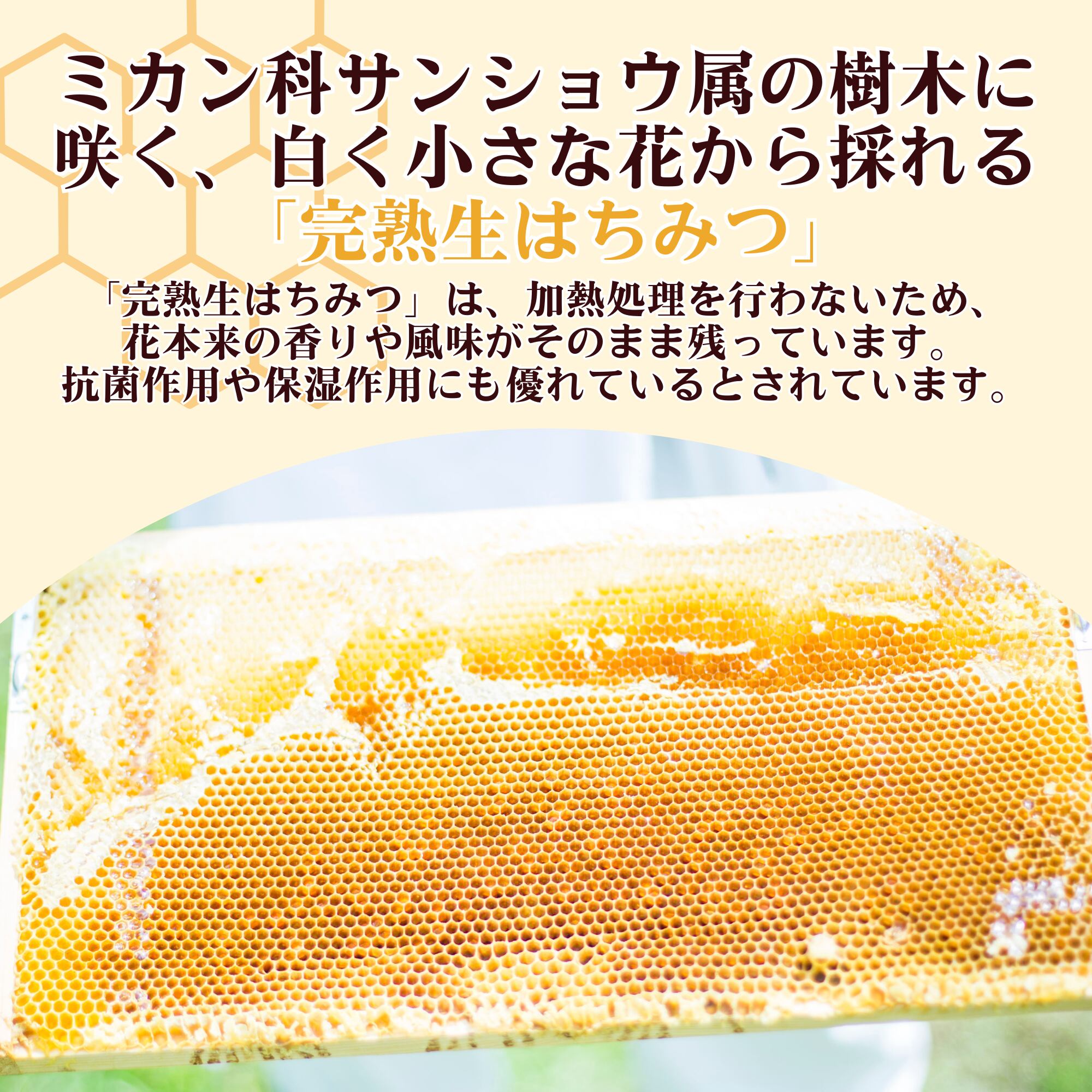 ・【からすざんしょう】市場にはほとんど流通していない希少なはちみつ「からすざんしょう」。ミカン科サンショウ属の樹木に咲く白い小さな花から採れたはちみつで、ほんのりスパイシーで、ビターさを感じる大人の甘みが特徴です。一般的なはちみつとは一線を画す、奥行きのある味わいをお楽しみいただけます。