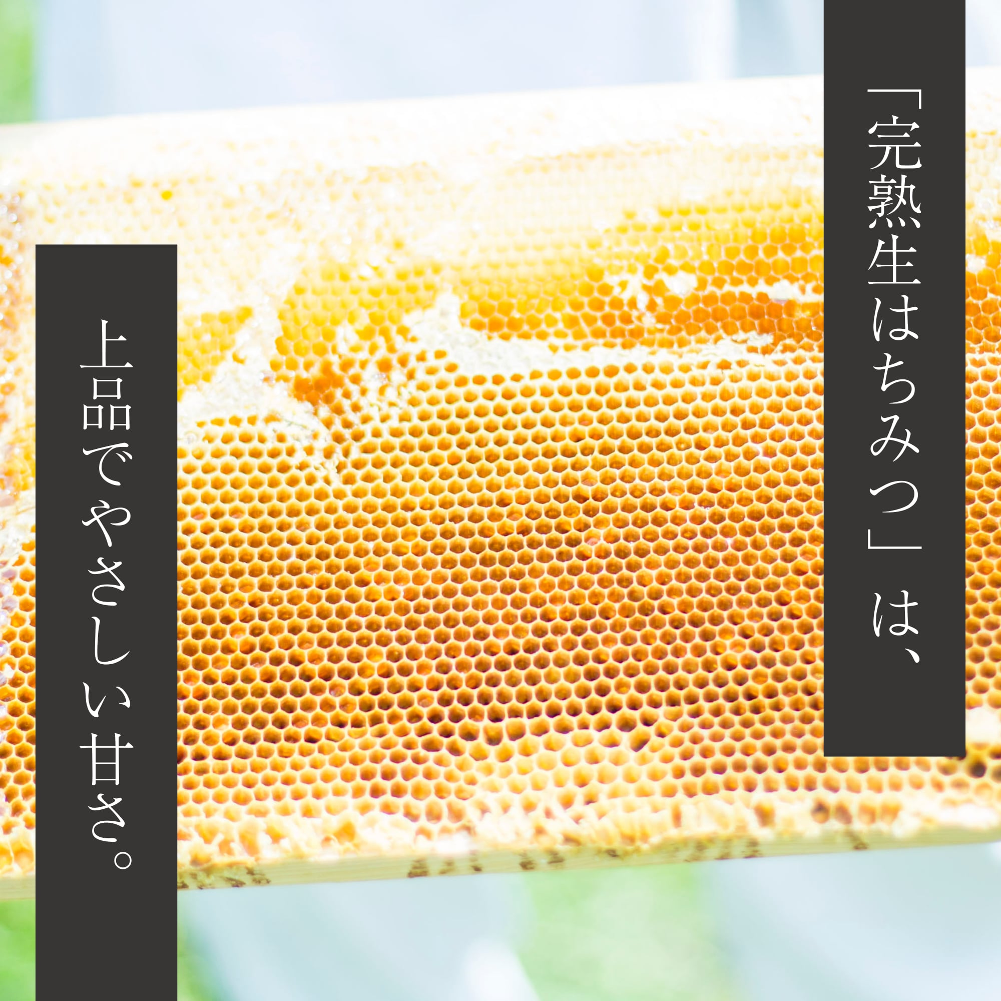 完熟を待ってから採蜜する「完熟生はちみつ」は、加熱処理を行わないため、花本来の香りや風味がそのまま残っています。口に含むと、ふわりと広がる豊かな香りと、上品でやさしい甘さ。酵素が生きており、美味しさだけでなく、抗菌作用や保湿作用にも優れているとされています。